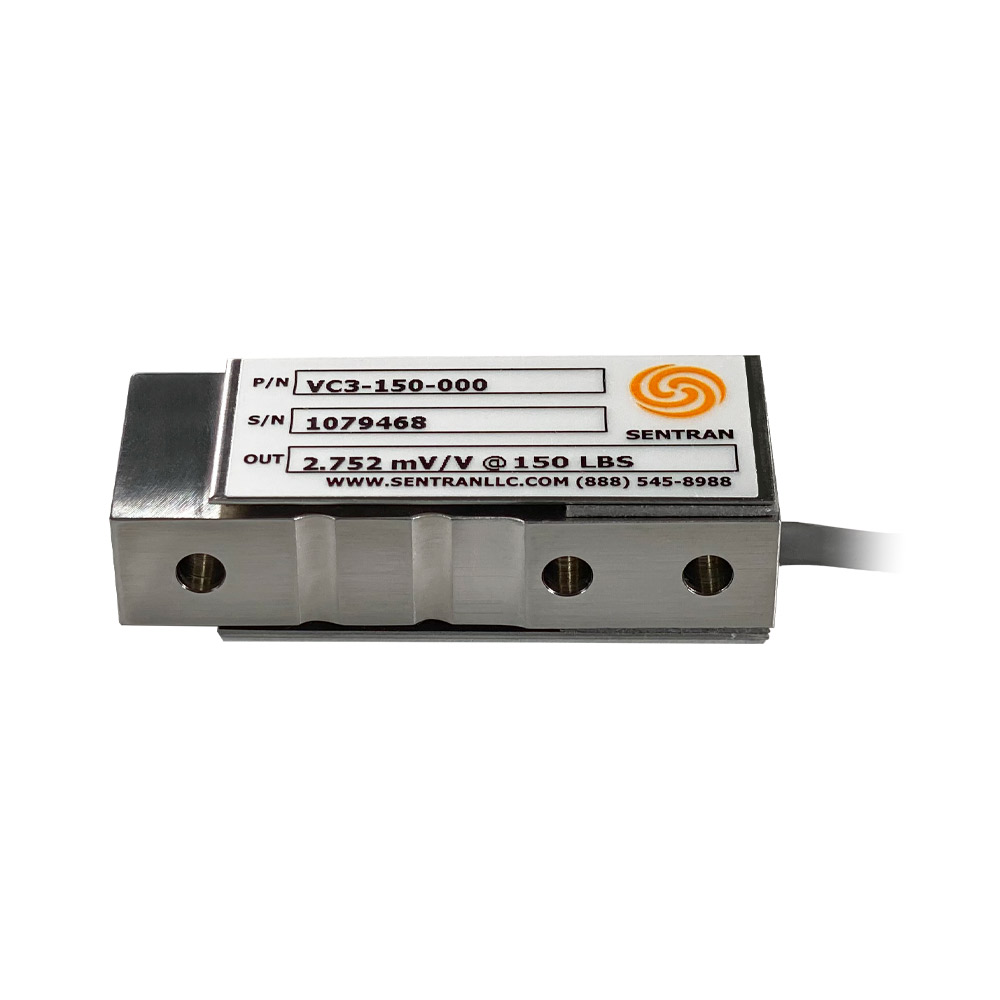 The VC3 Series is a miniature high performance cantilever beam load cell constructed of heat treated stainless steel. The VC3 is designed to accurately measure tension and compression forces in capacities ranging from 0-25 LB to 0-250 LB. The VC3 Series features a field proven dual-guided cantilever beam design that readily tolerates moments induced by angular, eccentric, or off-center loading, with minimal sensitivity to these extraneous loads, producing excellent performance in a very small, compact package. The inherent low deflection of the VC3 Series yields a high dynamic response and superior output resolution for a wide range of applications. This load cell is Harsh Environment Sealed (IP67-Limited Immersion) by virtue of proprietary multi-redundant barriers uniquely integrated to protect all internal components. The integral premium instrumentation grade cable features a durable PVC jacket over a paired foil shield for minimizing the unwanted electrical effects of RFI and EMI. The attributes of the VC3 Series make it convenient for weighing small bins and hoppers, making it an ideal choice for low force measurements, material handling, packaging, or bagging scale applications where a miniature precision load cell solution is required.